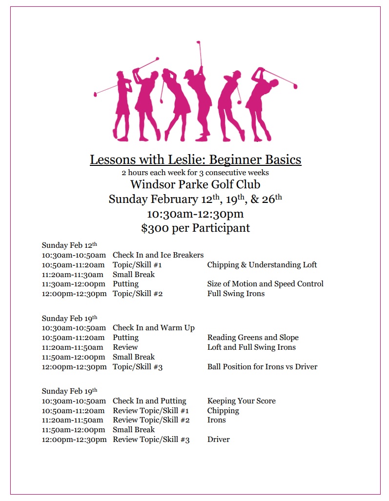 Spring Ladies Clinics! Posted on February 2, 2023 by Lessons with Leslie 0 Share this: Share on Facebook (Opens in new window) Facebook Share on LinkedIn (Opens in new window) LinkedIn Share on X (Opens in new window) X Like Loading... Related
